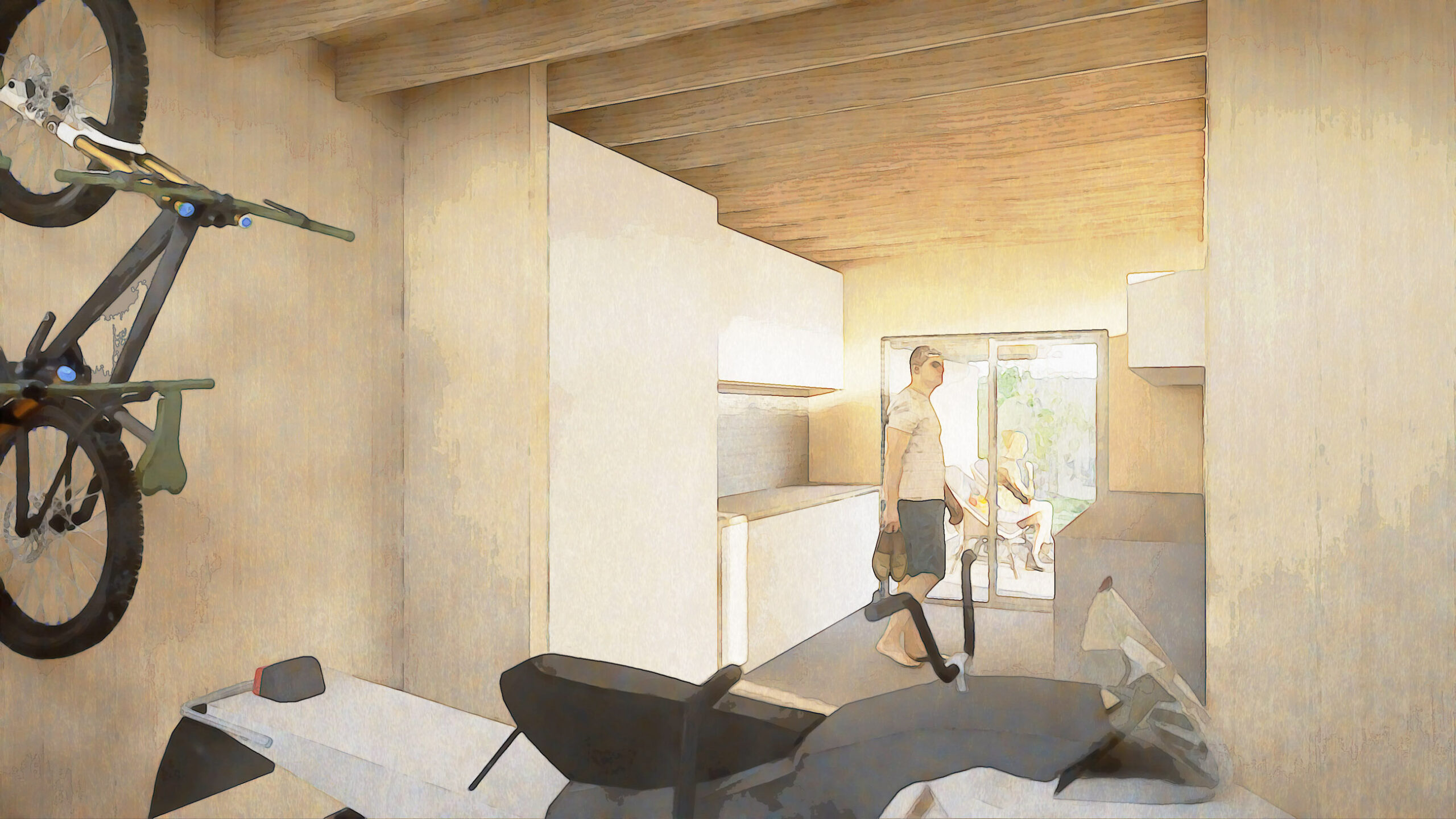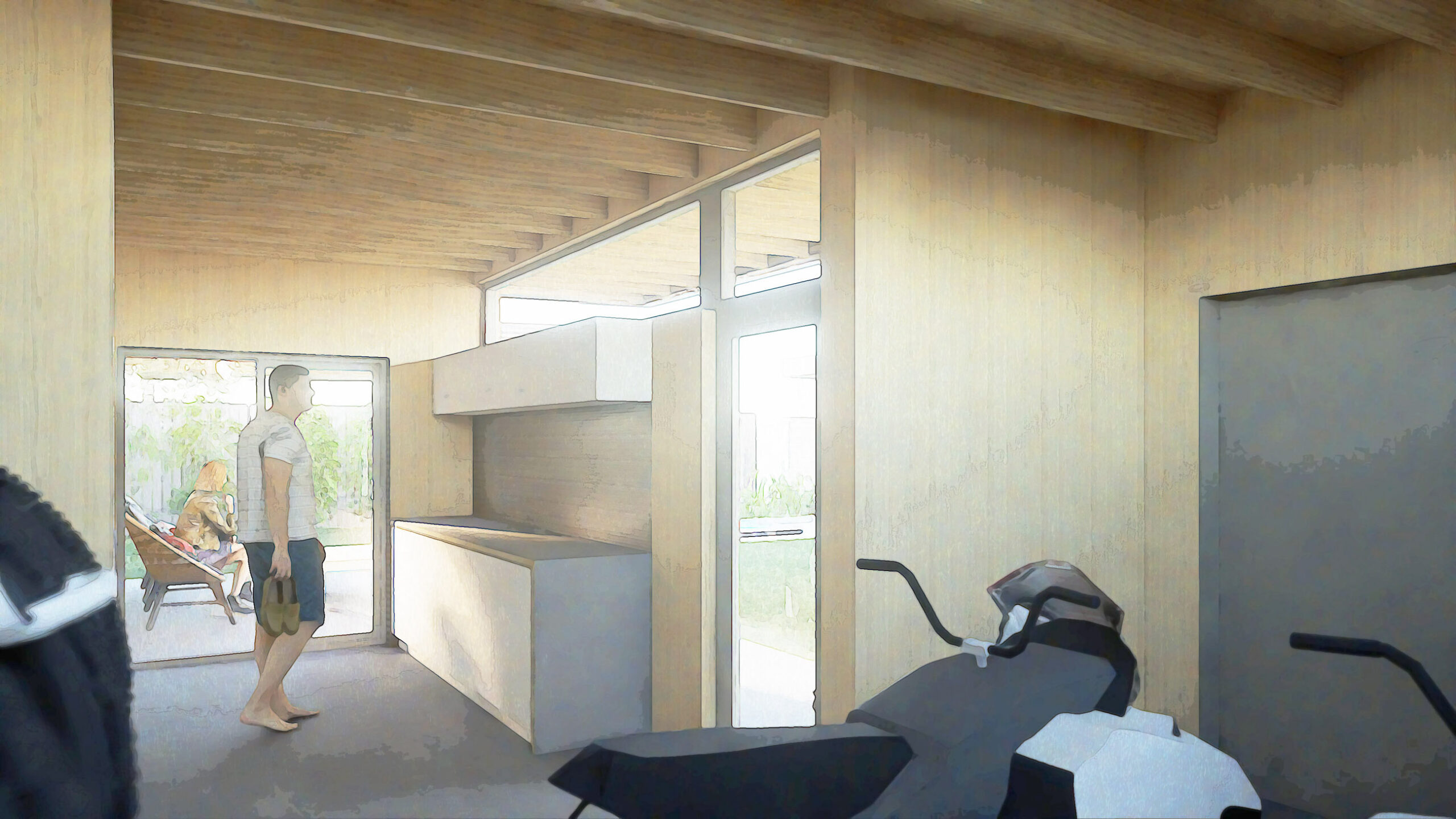 The shed marks the first phase of the 5205 Residence project. Initially conceived as a modest structure, it evolved into a versatile space designed to serve multiple purposes.